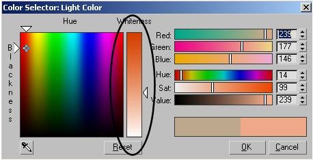 5. نشانگر Whiteness را در مرکز قرار دهید