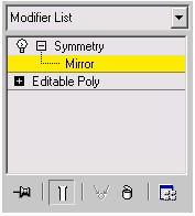 4. در قسمت modifier، بر روی علامت که در کنار گزینهی symmetry قرار دارد کلیک کنید تا زیر مجموعه های آن نمایش داده شود. سپس بر روی Mirror کلیک کنید.