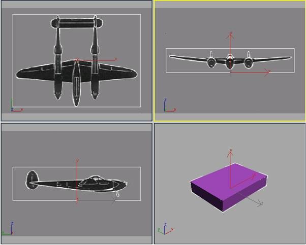 شما می توانید تصاویر مختلفی را به پس زمینهی نماها وارد کنید تا از آنها به عنوان الگویی برای ساختمان هواپیما استفاده نمایید. هر نما می تواند پس زمینهی خودش را داشته باشد. بنابراین شما می توانید یک تصویر متناظر را در نماهای Front,Left و Top وارد کنید تا از آن برای مدل سازی هواپیما کمک بگیرید.