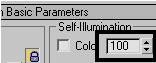 2. در قسمت Blinn Basic Parameters، مقدار Self-Illumination را به 100 تنظیم کنید.