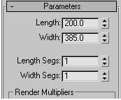 4. به Modify Panel بروید. در قسمت Parameters، مقدار Length را به 200 و Width را به 385 تنظیم کنید.
