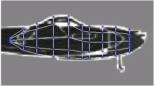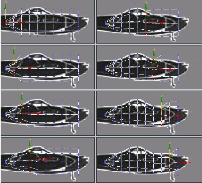 6. نمای Top را فعال کنید و فرآیند قبلی را تکرار نمایید. یک ردیف از نقاط اتصال را انتخاب کرده و آنها را با استفاده از ابزار Scale و Move با تصویر پس زمینه تطابق دهید.