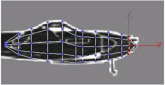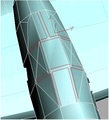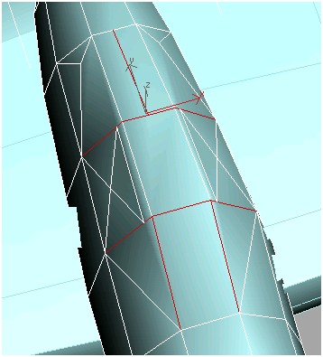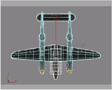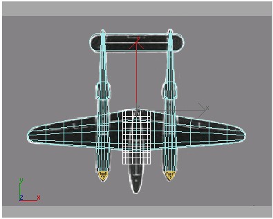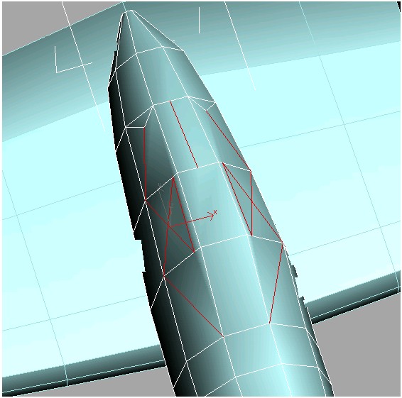 13. نقاط اتصالی که در پشت اتاقک قرار دارد را به صورت ستونی انتخاب کنید وآنها را در نمای perspective در طول محور Z به گونه ای حرکت دهید که پشت اتاقک در پشت بال ها پنهان شود.
