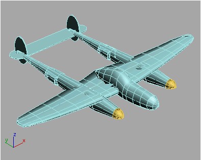 10. کار خود را با نام myp38.max ذخیره کنید و یا آنکه برای ادامه کار فایل p38_lightning.max را از مسیر \tutorials\modeling\p38_lightning پیدا کرده و آن را باز کنید.