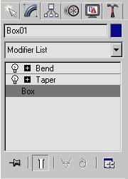 7. در قسمت modifier Stack (قسمت زیرین Modifier List) بر روی Box کلیک کنید.