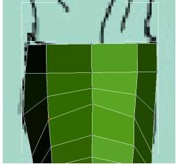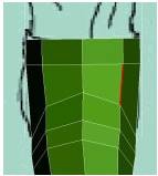 20. مرحلهی قبل را یک بار دیگر انجام دهید تا قسمت زیر کمربند نیز تشکیل شود. همچنین با استفاده از ابزار آلات مختلف (Move , Scale , Rotate ) چند ضلعی ایجاد شده را با خط زیر کمربند تطابق دهید.