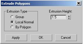 13. قسمت Extrusion Type را به Local Normal تنظیم کرده و مقدار Extrusion Heightرا به 1.5 تنظیم کنید.