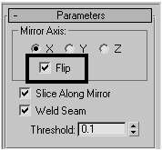 3. در قسمت Parameters ، قسمت مربوط به Mirror Axis را به X تنظیم کرده و گزینهی Flip را تیک بزنید.