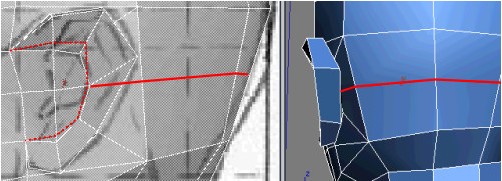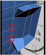 1. چند ضلعی های اطراف برآمدگی (به جز آنهایی که در جلوی گوش هستند) را انتخاب کنید.