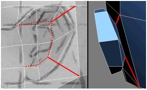 2. به حالت Polygon بروید و در قسمت Edit Geometry، بر روی Cut کلیک کرده و یک سری لبه در اطراف زبانه و مجرای گوش ایجاد کنید.