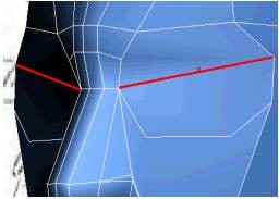 2. به حالت Vertex بروید و بر روی ابزار Cut کلیک کنید. سپس یک لبهی افقی از برآمدگی بینی تا قسمت چشم ها ایجاد کنید. (مانند تصویر زیر)