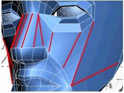 این درس به سه قسمت تقسیم می شود. ابتدا به پیشانی سپس به چانه و نهایتا به گونه ها جزئیات بیشتری اضافه می کنید. شما با تطبیق دادن Edge Loop ها، این نواحی را به یکدیگر متصل خواهید کرد.