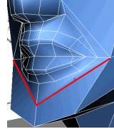 16. به حالت Vertex بروید و با استفاده از ابزار Cut و یا Connect ، نقاط اتصال بین edge Loop های پایینی دهان و لبه های فوقانی چانه را به یکدیگر متصل سازید.