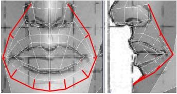 9. در نمای Right، نقطهی اتصالی که هم اکنون بر روی چانه قرار دارد را به طرف عقب بکشید تا جایی که به منحنی چروک دهان برسد. شما بایستی این کار را با استفاده از ابزار Select and Move انجام دهید.