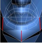 6. با ایجاد یک برش، چند ضلعی بیرونی گونه را به دو نیم تقسیم کنید.