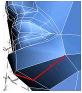 5. بر روی Cut کلیک کرده و لبه ای که در تصویر زیر نشان داده شده است را به لبهی عمودی چانه وصل کنید.