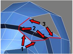 1. به حالتPolygon بروید و چند ضلعی هایی که گوش را احاطه کرده اند، انتخاب کنید.