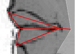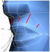 6.لبهی جدید و همچنین دو نیمهی لبه ای که از بینی تا چانه کشیده شده است را انتخاب کنید.