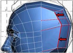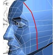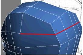 6. تمام لبه هایی که در ناحیهی گیجگاه سر قرار دارند را انتخاب کنید (بین چشم و گوش). لبه های زیر لبهی آرواره را انتخاب نکنید.