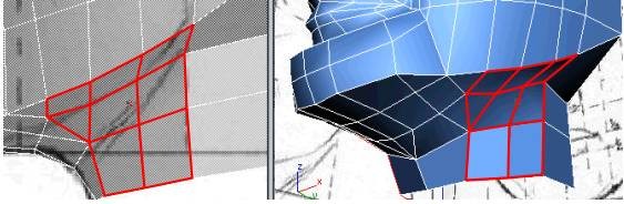 8. به حالت Vertex بروید و نقاط اتصال جدید را به گونه ای جا به جا کنید که با پهنای سر در تصویر مرجع تطبیق داده شود.