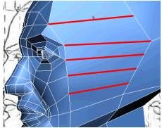 10. یک سری لبه های افقی دیگری در پشت سر ایجاد کنید تا مانند تصویر زیر، استخوان های پشت سر را پوشش دهند.