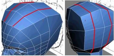 9. بر روی Cut کلیک کرده و یک سری لبه های پیوسته در اطراف سر ایجاد کنید تا ماهیچهی مرزی پیشانی را به ماهیچهی گردن، واقع در پشت سر وصل کند. (مانند تصویر زیر)