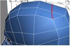 6. به حالت Edge بروید و یک لبهی اضافه که در نزدیکی شاهرگ گردن قرار گرفته است را انتخاب کنید.