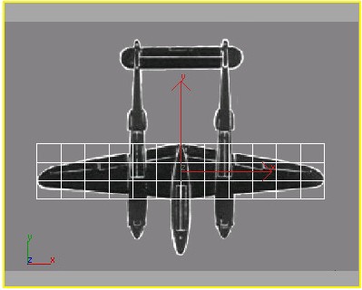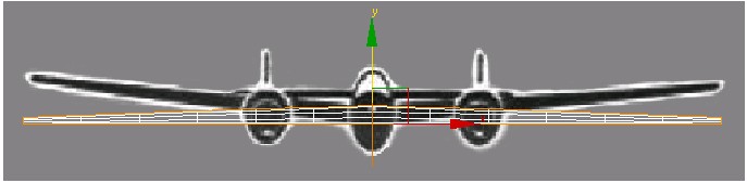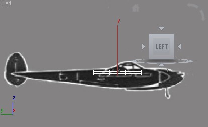 قبل از شروع چنانچه بال هواپیما در نمای Left در جای مناسب قرار نگرفته آن را با استفاده از ابزار select and move در مکان مناسب خود (مانند تصویر زیر) قرار دهید.