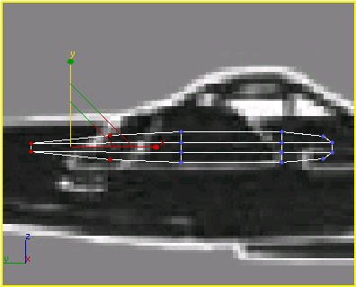 2. در نمای Top، مرکز Taper را در طول محور Y به طرف سر هواپیما حرکت دهید تا جایی که با تصویر پس زمینه تطبیق داده شود.