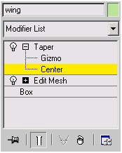 4. ویرایشگر Taper بر ارتفاع بال تاثیر گذاشته است. در قسمت modifier بر روی Box کلیک کرده و مقدار Height را به .4318m تغییر دهید.