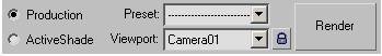 7. در انتهای پنجرهی Render setup، بر روی view کلیک کنید و از لیست باز شده، camera01 را انتخاب نمایید.