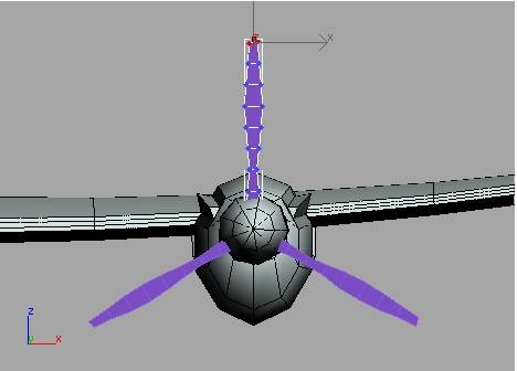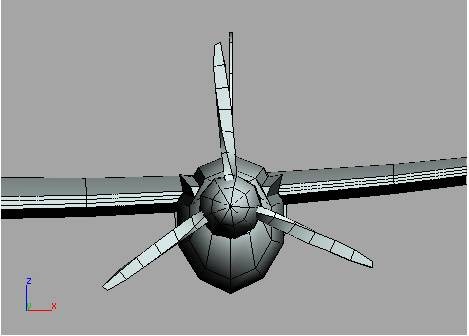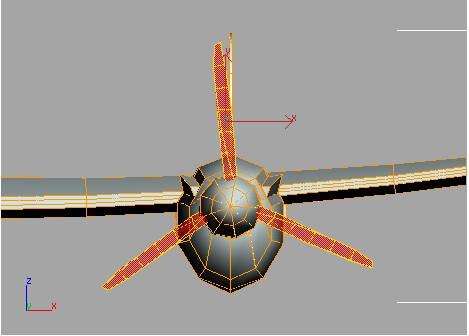 حلا پره ها به هواپیما متصل گشته و توسط Symmetry modifier به طور اتوماتیک به نیمهی دیگر هواپیما اضافه شده اند.