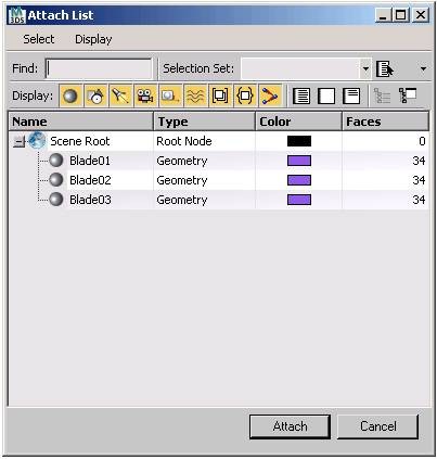 پنجره ای با نام Attach list باز می شود که همهی پره ها در آن نمایش داده شده اند.