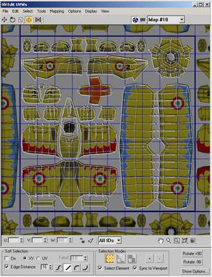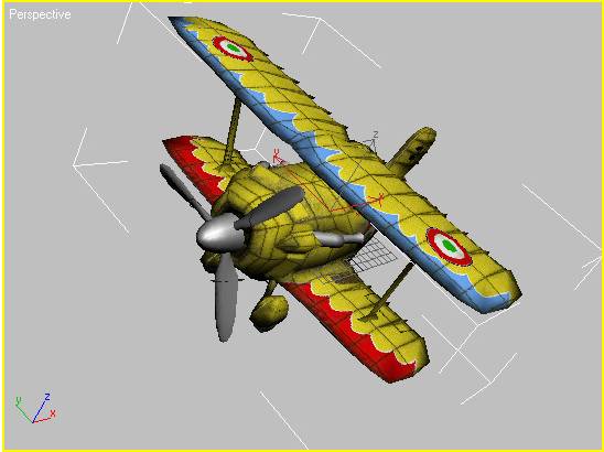 7. همچنان در نمای Perspective بر روی قسمت های مختلف هواپیما کلیک کنید تا ببینید کدام یک از دسته های UVW به کدام یک از قسمت های هواپیما اختصاص دارند.